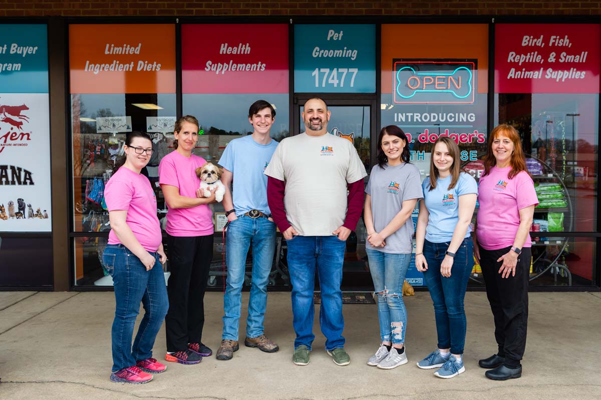 When Greg moved to Caroline County and saw that there was no convenient place to purchase the food and supplies that he knew and trusted, the idea to open E.M. Dodger’s was born. Since opening our doors, E.M. Dodger’s has steadily expanded its offerings to include supplies for all species of pets, as well as self-service pet bathing and full-service grooming.