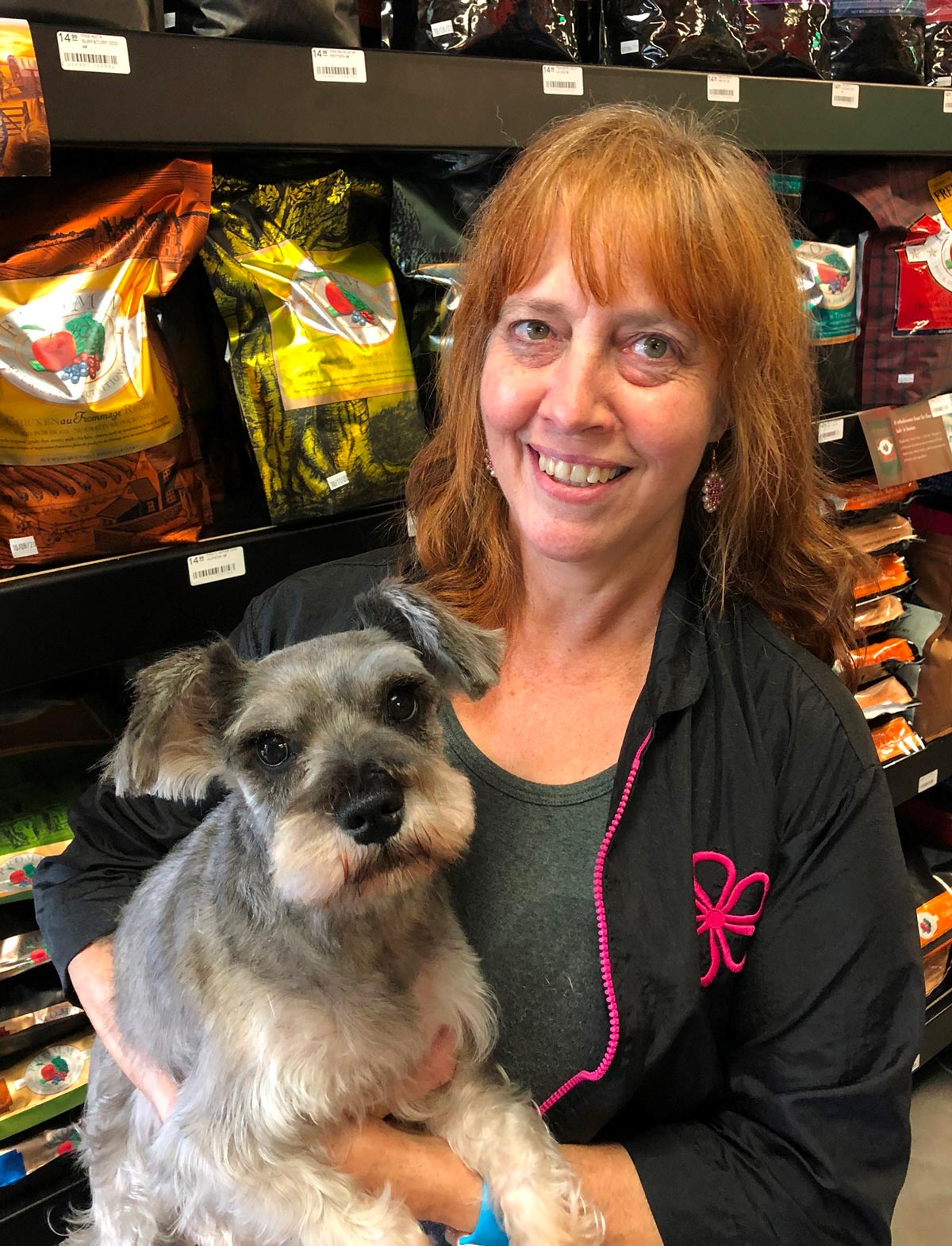 Bonnie is our full-time pet groomer and generally works Monday thru Friday. She has been grooming for 18 years and came to us from another salon where she was a Salon Leader. Bonnie went to grooming school because she loves animals and has a natural artistic flair. Her favorite dogs to groom are Miniature Schnauzers and Yorkshire Terriers. Bonnie is also our only groomer that works with cats. She is married and has 3 sons, 2 dogs, 2 cats, and a bearded dragon. Her hobbies include making cold-processed soaps, bead work, baking, and staying very active with her church. I think it is safe to say she is very busy when she is not at work. Bonnie’s dream vacation would be a trip to Scotland and her favorite time of year is Spring.